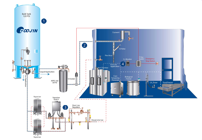식품 포장에서 반도체 장비 냉각 시스템, 융·복합 충전소 및 우주선 발사 시스템, LNG 벙커링선에 이르기까지 각종 고순도 액화가스(LNG,LN2, LO2, LH2,LAR 등)를 저장 탱크에서 사용장비까지 이송되도록 설계 및 엔지니어링을 통해 고객의 투자자본 대비 최대 혜택을 보장합니다.